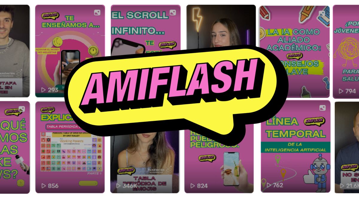 Contenidos breves para Instagram y TikTok, dirigidos especialmente a los jóvenes, donde semanalmente se trata la actualidad del mundo digital, además de consejos para mantener tu privacidad online, tips para el bienestar digital, novedades sobre el impacto de la inteligencia artificial o cómo detectar fake news, entre otros. Amiflash busca fomentar el pensamiento crítico y la reflexión sobre la gestión de la información y los medios, siempre de la mano de jóvenes periodistas de Atresmedia.