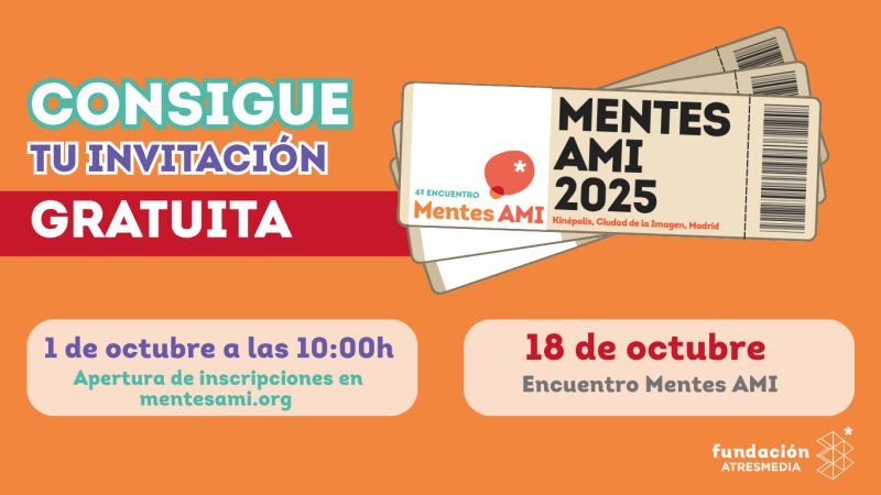 El Encuentro Mentes AMI 2025 se celebrará el 18 de octubre en los Cines Kinépolis, Ciudad de la Imagen, Madrid, y las invitaciones estarán disponibles a partir de mañana, 1 de octubre, a las 10:00 h, de manera gratuita a través de mentesami.org.