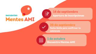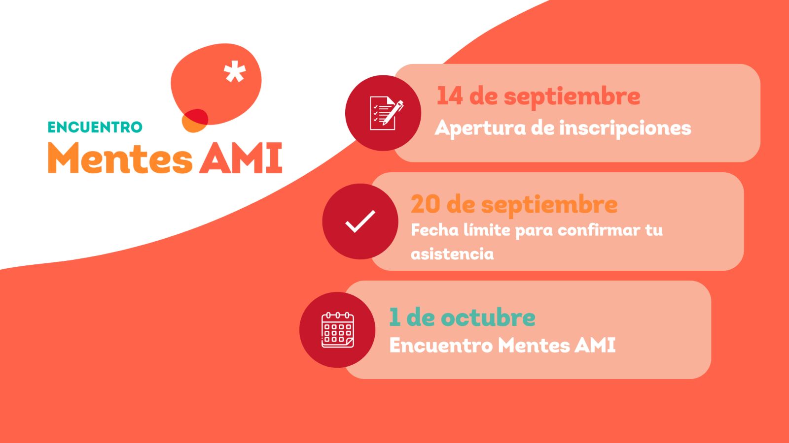 Las entradas para el Encuentro Mentes AMI que se celebra el próximo 1 de octubre en los Cines Kinépolis, Ciudad de la Imagen de Madrid se podrán conseguir desde el 14 de septiembre a las 10.00h en la página web del proyecto: mentesami.org.