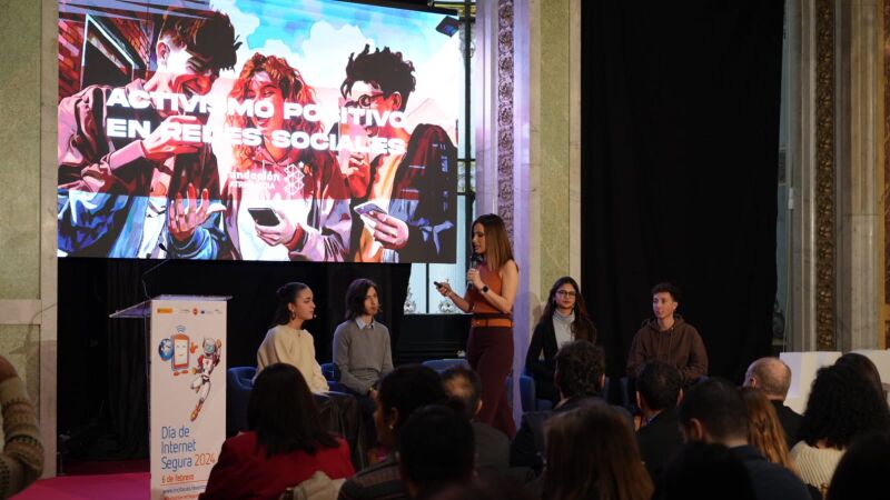 Tras la ponencia, ha tenido lugar una mesa redonda, moderada también por la presentadora de Antena 3 noticias, en la que jóvenes participantes en proyectos y actividades del INCIBE han podido reflexionar sobre aspectos claves de seguridad y derechos digitales, aportando sus puntos de vista e ideas para evitar contenidos que puedan dañarles, mejorando su experiencia digital y fomentando su pensamiento crítico.
