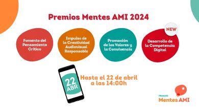 Los proyectos ganadores serán desvelados en directo en el Encuentro Mentes AMI, evento que tiene previsto celebrarse el 19 de octubre y que volverá a convertirse en un gran encuentro educativo donde los docentes y expertos podrán compartir experiencias y conocer tendencias y recursos útiles para trasladar a sus alumnos competencias relacionadas con la Alfabetización Mediática, Informacional y digital.